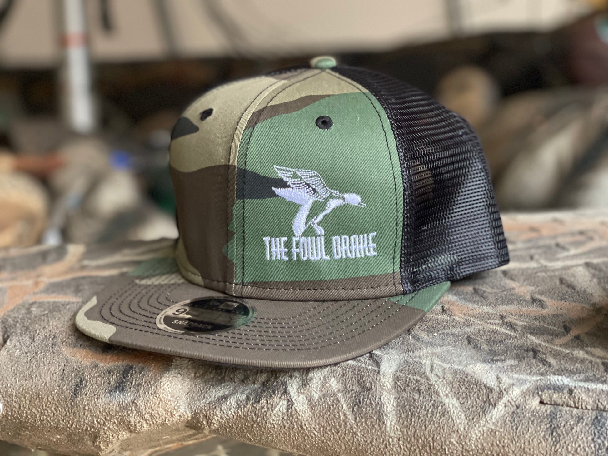 District Flat Bill Snapback Trucker Cap - Military Camo with "The Fowl Drake" Embroidered on the Front Left Panel
