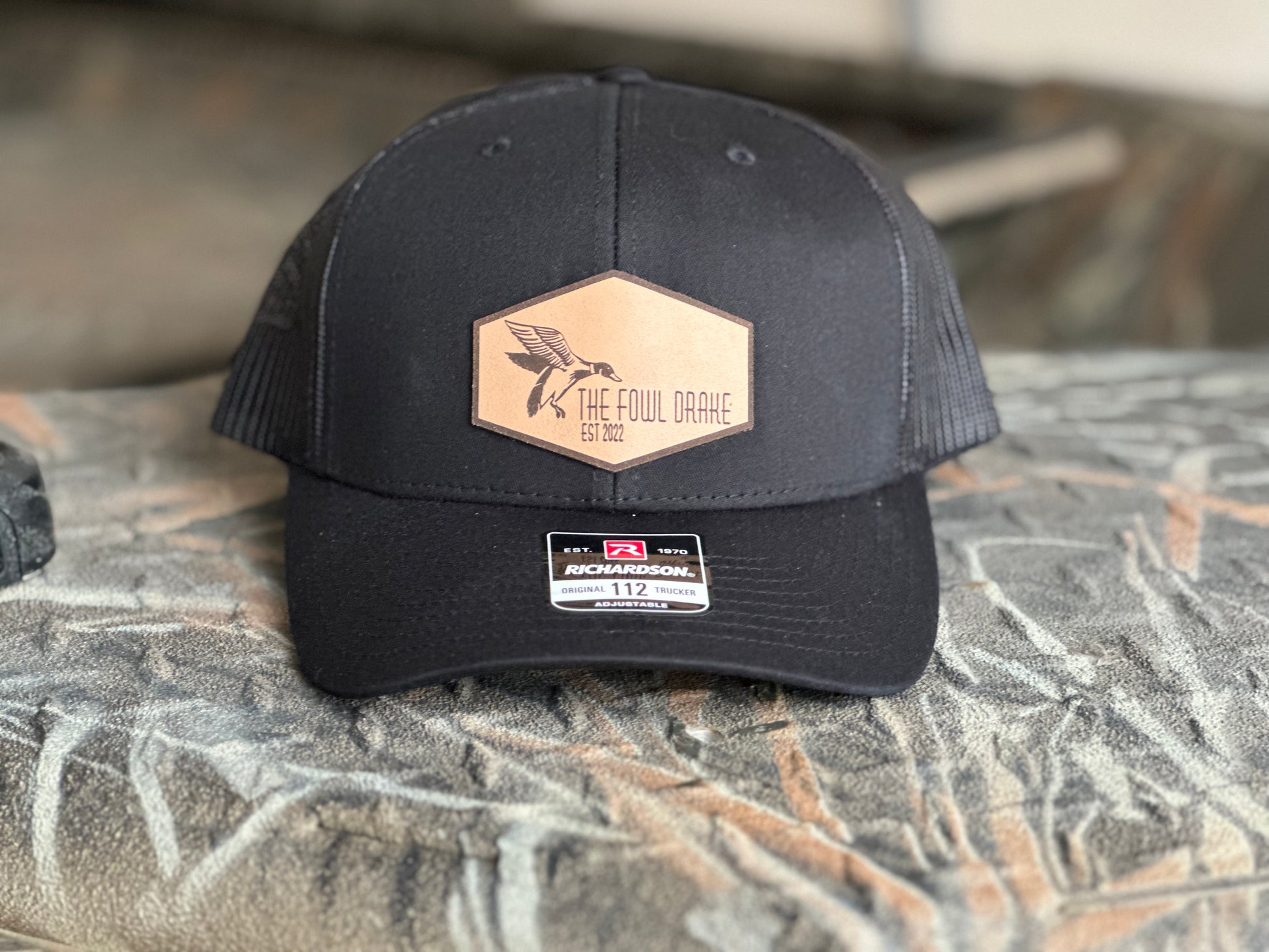 All Black Port Authority SnapBack Trucker Cap with “The Fowl Drake EST.2022” leather patch